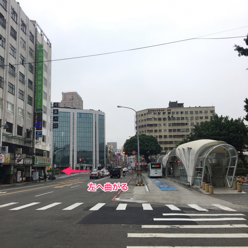 旧台中駅を出たら右側に沿って歩き、突き当たりを右に曲がります。