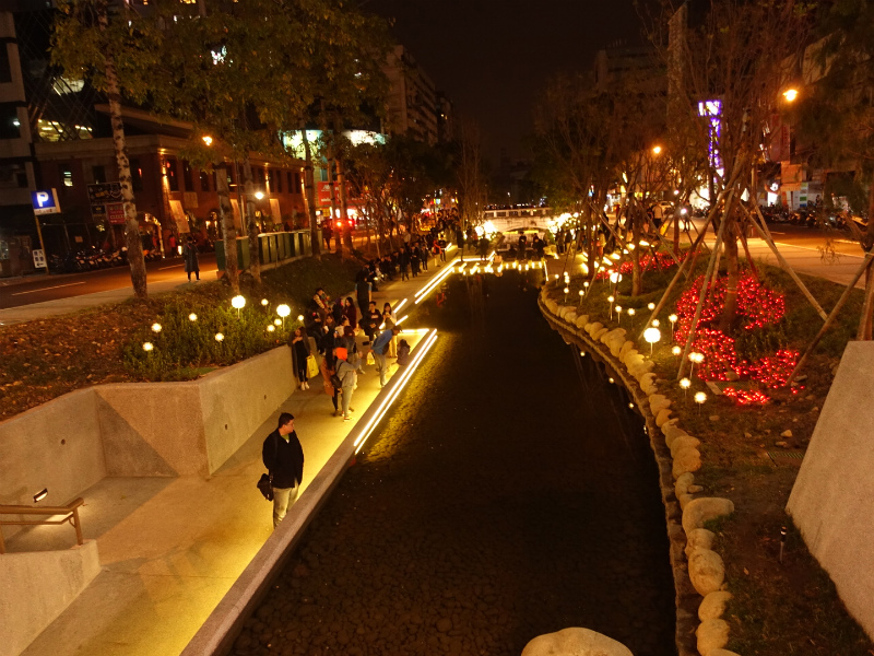 私はそんな台中も好きなのですが、台中駅近くを流れるドブ臭い川がずっと工事をしていて、先週(2月前半)に工事が終了して「綠川水岸廊道」という名前で川辺も散歩できる公園になりました。
