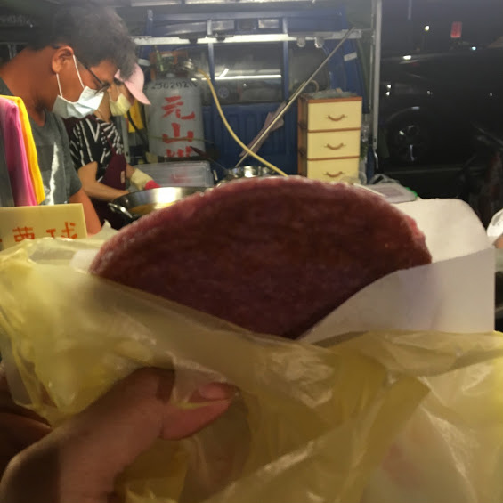 紅薯餠、サツマイモを捏ねてハンバーグのような形で焼いたお菓子25元90円。さっぱり味で美味しいです。