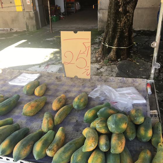 木瓜、パパイア、日本ではもう高くて一生縁のない果物の代表パパイヤが一斤15元54円。