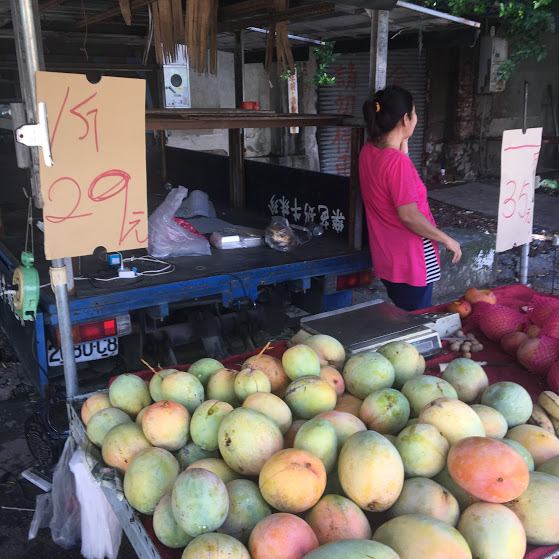愛文芒果、愛文という品種の赤い色のマンゴーです。一斤69元250円。これ日本だと一個1000円ぐらいする高級マンゴーですがこちらなら一個100円ぐらいで食べることができます。