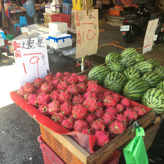 火龍果、ドラゴンフルーツ。日本では高級果物になるドラゴンフルーツもここでは一斤19元。一斤ですよ!