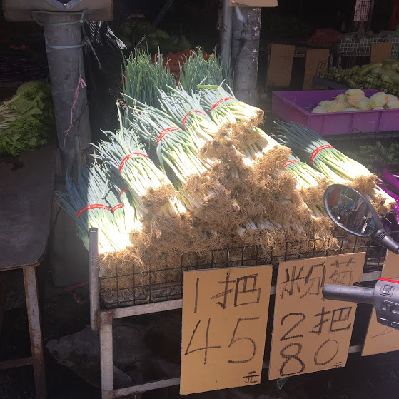 蔥、ネギです1束45元160円、2束で80元288円。同じ1束でも量は段違いでしょう(笑)