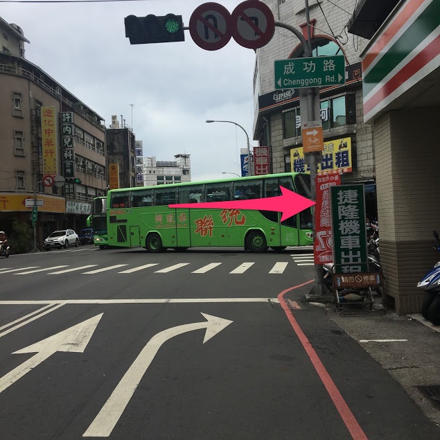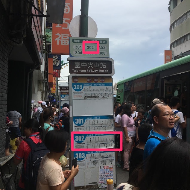 市内バス乗り場は台中駅を出て台湾大道路に入ったすぐにバス停があります。