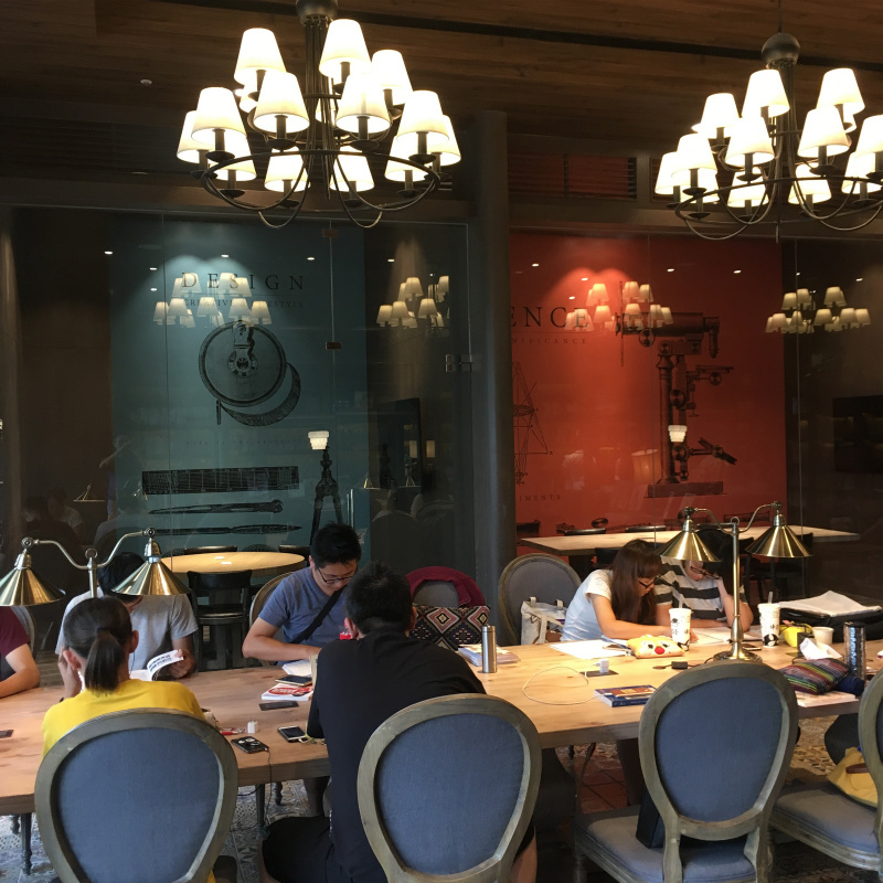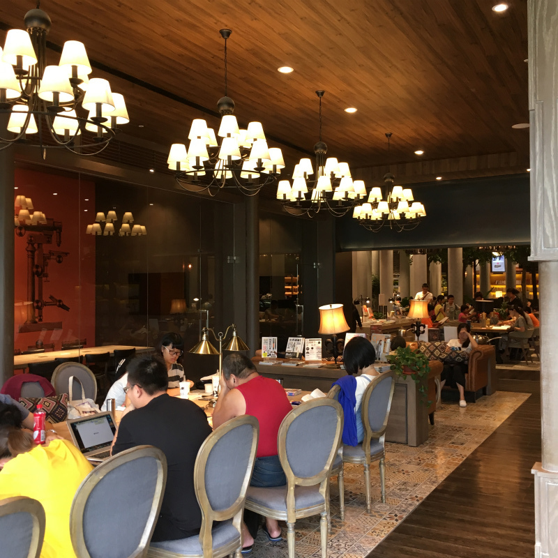 しかし、人の数も凄くて全然ゆったり過ごすことができません。コーヒーが飲めるスタバのあるフロアーは人が一杯でキツキツです。何時間もPC広げて作業など実際は無理ですよね。
