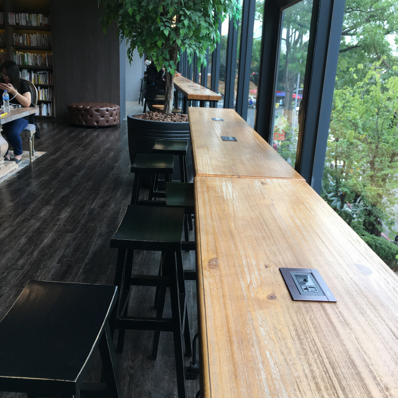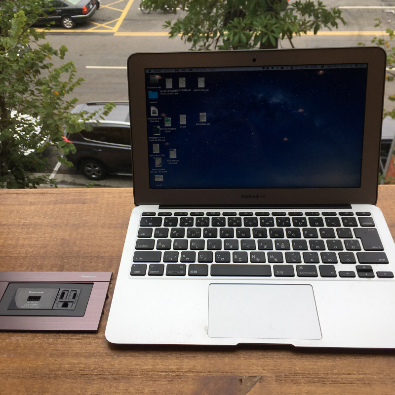 カウンター席、テーブル席、全ての電源があります。