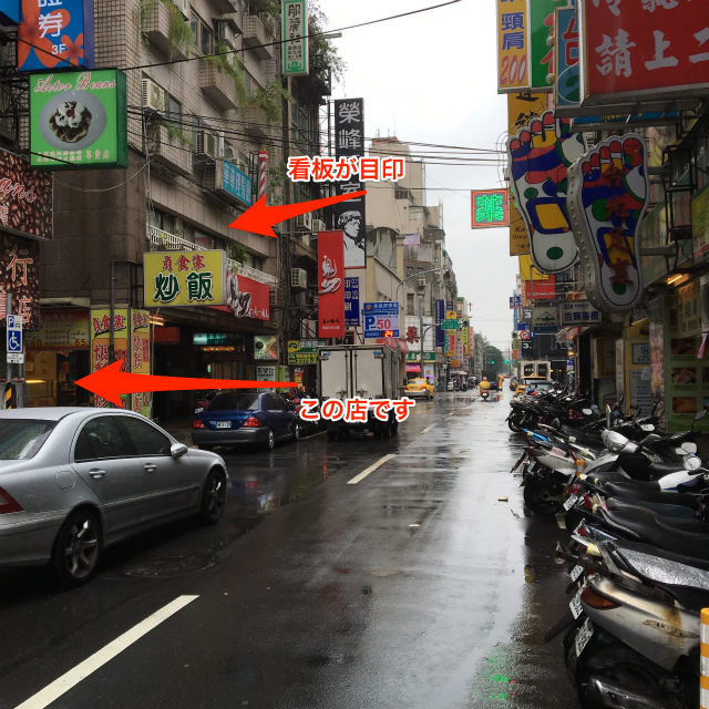 大きな足の看板のマークのある道の向かい側、魯肉飯店へ行く道の反対にあります