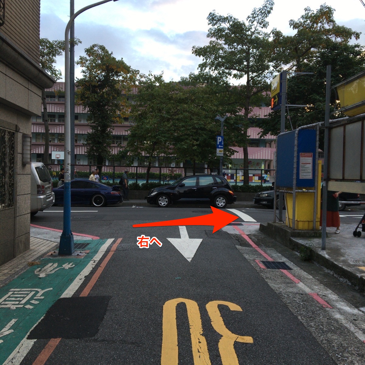 まっすぐ進み突き当たり(小学校)を右に曲がる