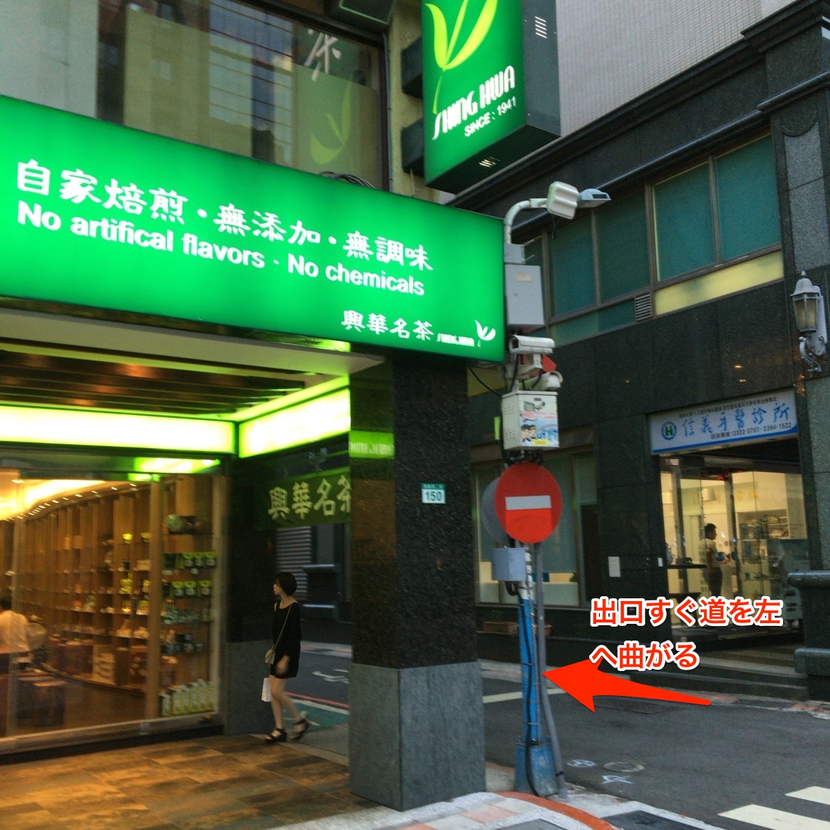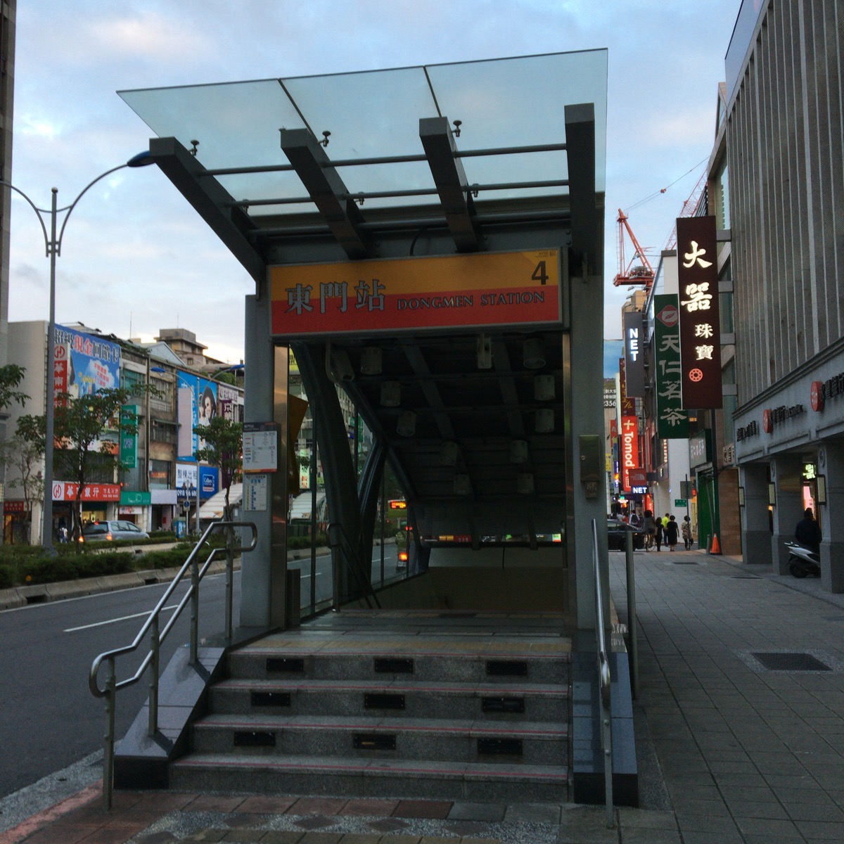 地下鉄淡水線(赤い色のライン)像山行きに乗って東門駅で降りて4番出口