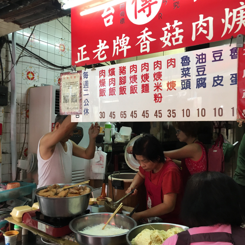 オススメは「肉焿飯」と「肉焿麵」共に一皿45元162円に安さ。1元=3.6円で計算。