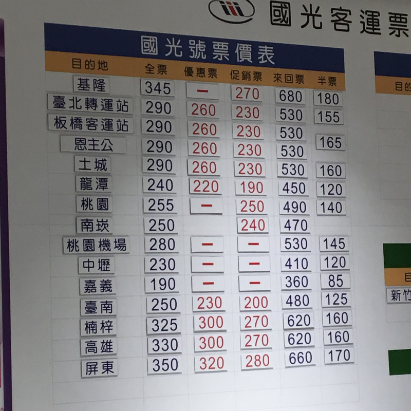 國光客運が最大手のバス会社で値段が一番安いのが和欣客運ですね。