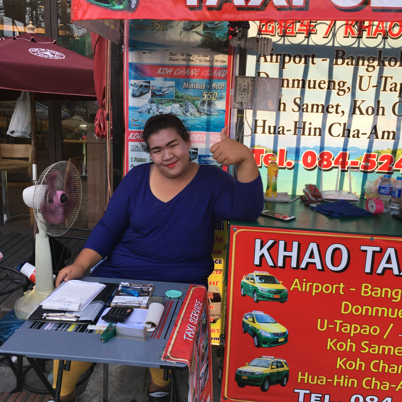街中の流しに頼むと1000バーツやホテルで予約をすると800バーツなどと言われたので街のいたるところにあるタクシー予約店のようなところで予約をするといいと思います。