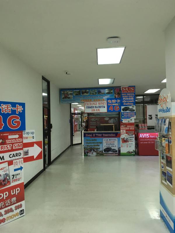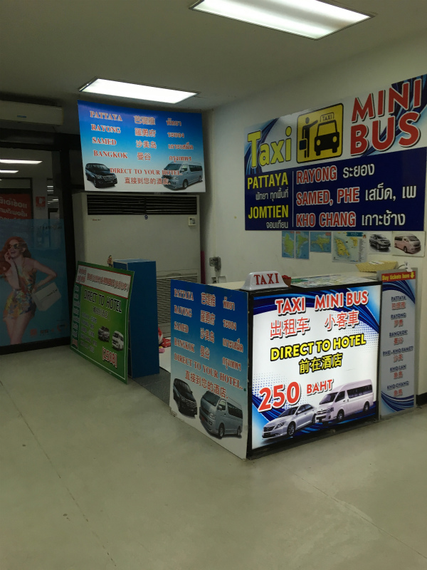 入国ゲートすぐにパタヤ中心部へ行くミニバンの予約場所があります。料金は同じく250バーツ。