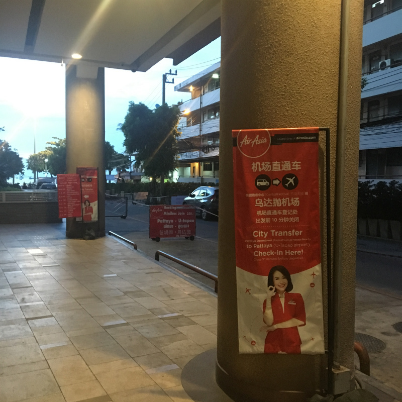 直線距離でパタヤ中心部から20㎞ほどと結構離れているのですが、路線バスなどがないので、現状はエアアジアが出している乗客専用のミニバンに乗るとタクシーで行くしかありません。